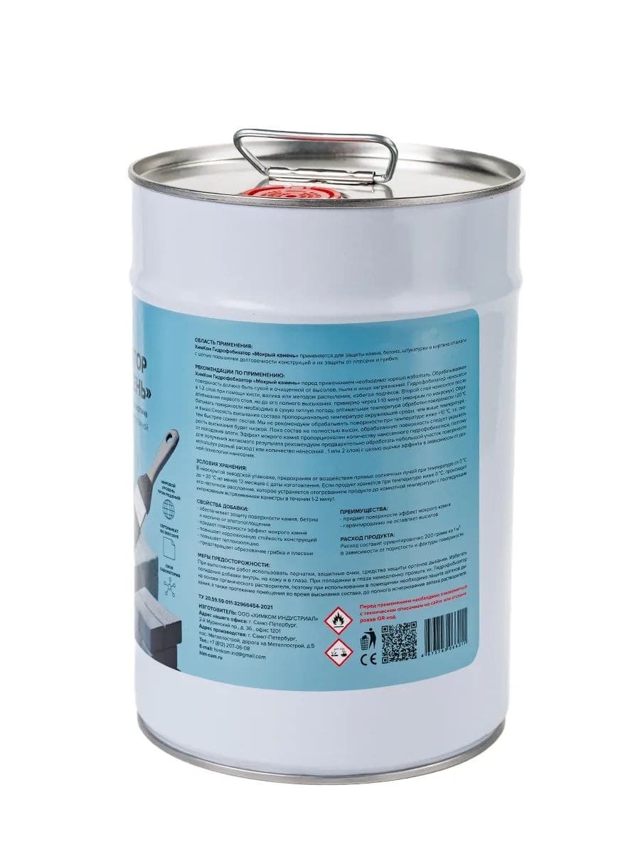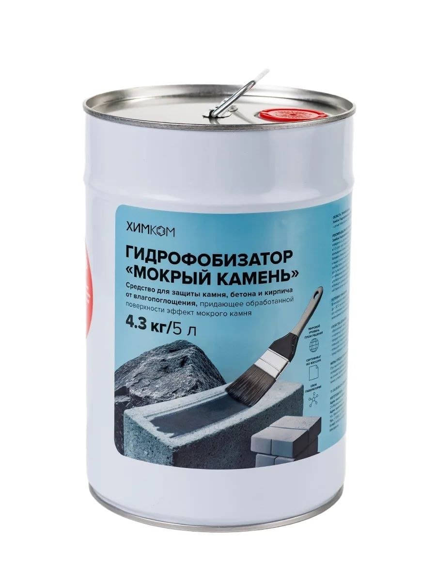 Гидрофобизатор Химком «Мокрый камень» – раствор полимерной смолы и кремнийорганического гидрофобизатора в органическом растворителе.